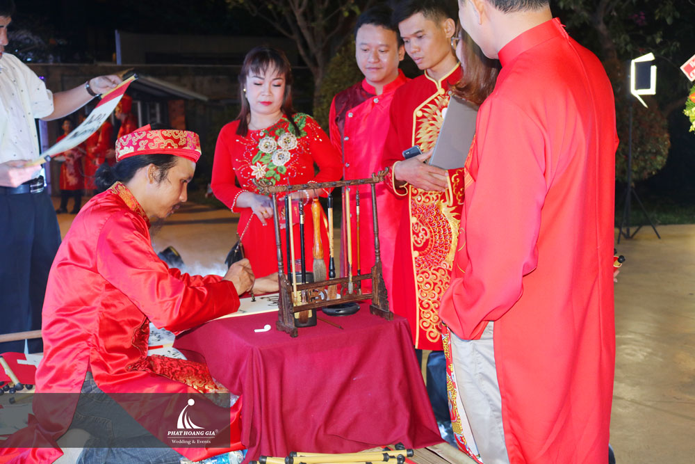 Hình ảnh ông đồ bên câu đối đỏ chắc hẳn không còn quá xa lạ với mỗi người khi mỗi dịp tết về. Ông đồ với áo dài khăn đống bên mực tàu giấy đỏ với những câu đối chữ sẽ giúp tái hiện lại không khí tết truyền thống của dân tộc ta, giúp cho những người tham dự sự kiện tất niên có thể hoài niệm về một cái tết xưa với sự gần gũi và mộc mạc nhất