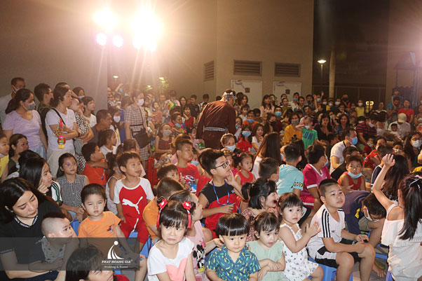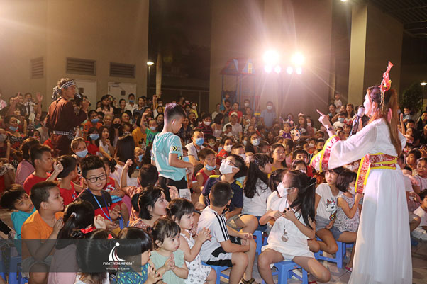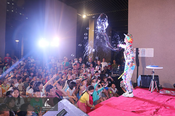 Những tiết mục biểu diễn văn nghệ đến từ các bé thiếu nhi sống tại chung cư cũng làm không khí trở nên vui tươi hơn bao giờ hết. Không những thế chương trình còn mang đến cho các bé những tiết mục vô cùng hấp dẫn khác như tiết mục xiếc khỉ, tiết mục thổi bong bóng xà phòng, tiết mục múa lân sư rồng và cuối cùng là cùng nhau phá cỗ đêm trăng rằm