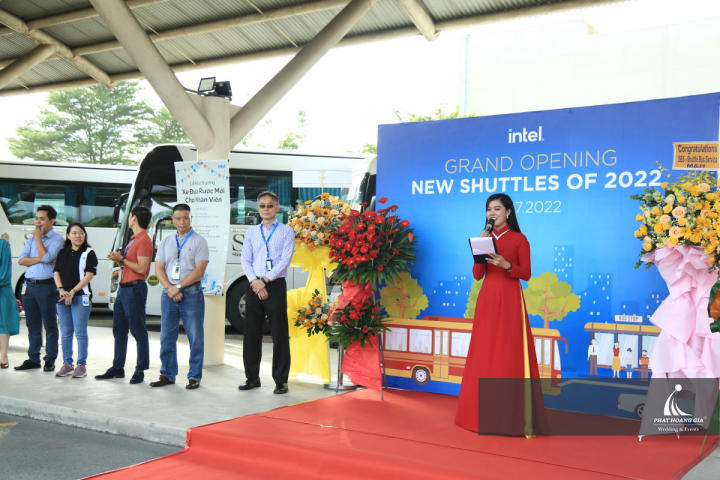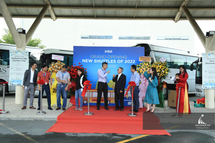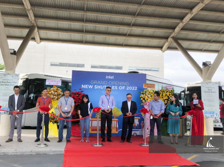 Ngày 13.07.2022, Phát Hoàng Gia hân hạnh tiếp tục đồng hành cùng công ty ADEN tổ chức sự kiện khai trương tuyến xe buýt mới cho công ty TNHH INTEL PRODUCTS VIỆT NAM, tại địa chỉ: khu công nghệ cao, Đường D1, TP. HCM.