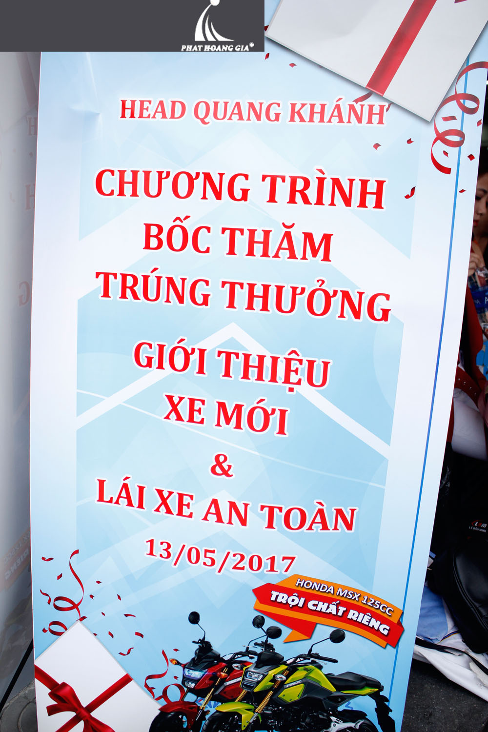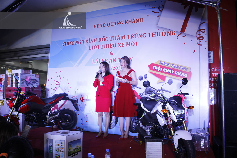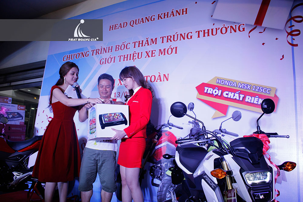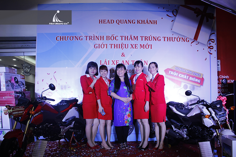 Tối ngày 13.05.2017 vừa qua, công ty TNHH MTV Sự Kiện Phát Hoàng Gia đã tổ chức thành công buổi bốc thăm trúng thưởng tại Hệ thống Head Honda Quang Khánh, địa chỉ số 2 Trường Chinh, Phường Tây Thạnh, Quận Tân Phú, TP.HCM. Khách hàng mua xe sẽ nhận được 1 phiếu bốc thăm may mắn có cơ hội nhận những phần quà có giá trị lớn.