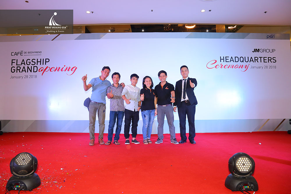 Ngày 28.01.2018 vừa qua, Phát Hoàng Gia hân hạnh phối hợp cùng Tập đoàn JM Group trong sự kiện Kỷ niệm việc di dời trụ sở chính công ty và khai trương trụ sở chính của Café De Bodyfriend, địa chỉ mới được đặt tại Thảo Điền Pearl, 12 Quốc Hương, Phường Thảo Điền Quận 2, TpHCM. Buổi lễ được diễn ra trong bầu không khí sôi động và hào hứng nhưng cũng không kém phần trịnh trọng, với sự tham gia của các vị đại biểu, khách mời đến từ Hàn Quốc và toàn thể nhân viên JM Group tại Việt Nam.