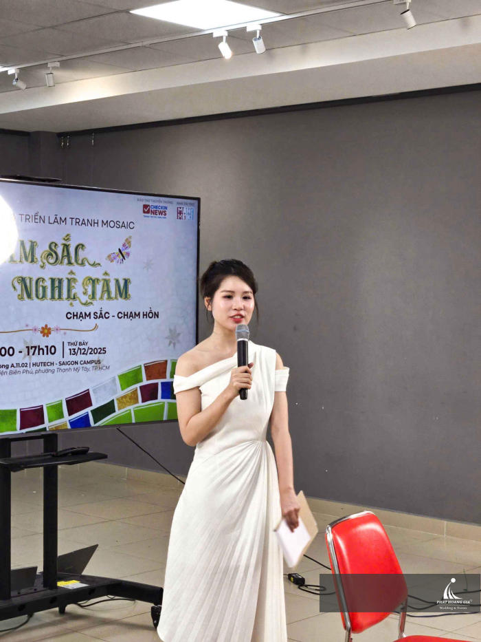 Ngày 13.12.2025, Phát Hoàng Gia đồng hành cùng Khảm Sắc Nghệ Tâm trường Hutech tổ chức buổi Workshop & Triển Lãm Tranh Mosaic tại phòng A11.02, HUTECH Saigon Campus ở địa chỉ: 475A Điện Biên Phủ, Phường Thạnh Mỹ Tây, TP.HCM.