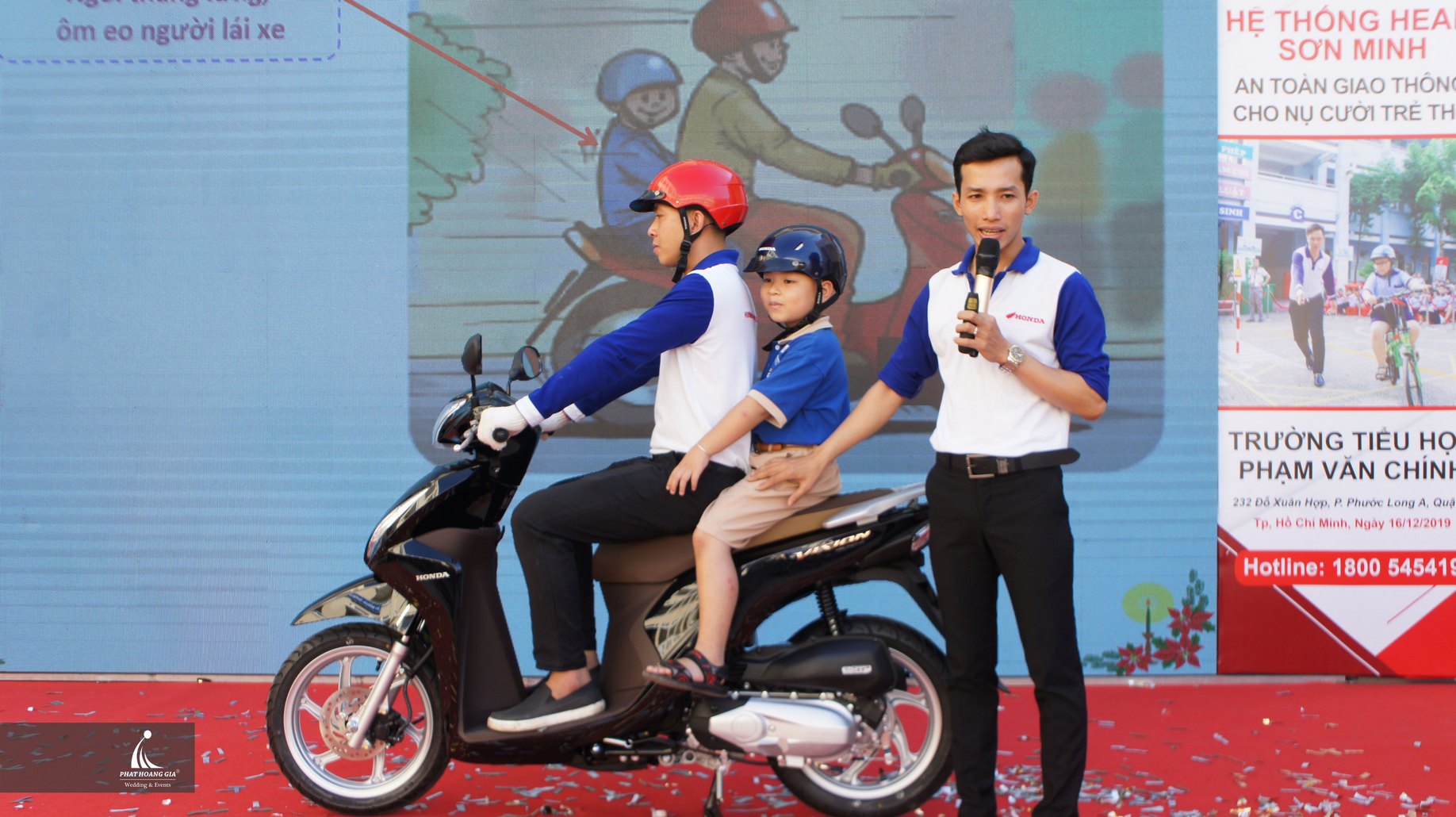 Ngày 16.12.2019 vừa qua, được sự tin tưởng của Head Honda Sơn Minh, Công ty TNHH MTV Sự Kiện Phát Hoàng Gia hân hạnh tổ chức thành công sự kiện “Head Honda Sơn Minh – Ngày hội lái xe an toàn” tại Trường Tiểu học Phạm Văn Chính, 232 Đỗ Xuân Hợp, phường Phước Long A, Quận 9, HCM.
