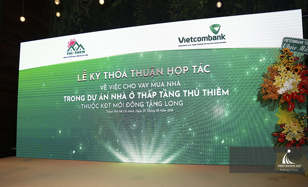Sáng ngày 27.08.2018, Công ty MTV Sự Kiện Phát Hoàng Gia hân hạnh tổ chức thành công sự kiện “Lễ ký kết hợp tác kinh doanh giữa ngân hàng Vietcombank – CN Tân Định và CTCP Phát triển nhà Thủ Thiêm” tại Trung tâm hội nghị GEM Center số 8 Nguyễn Bỉnh Khiêm, Phường Đa Kao, Quận 1, Tp. HCM. Tại sự kiện, CTCP Phát triển nhà Thủ Thiêm và Ngân hàng Vietcombank đã ký kết thỏa thuận hợp tác về việc cho khách hàng vay mua nhà tại Dự án Nhà ở Thấp tầng Thủ Thiêm thuộc khu đô thị mới Đông Tăng Long, Quận 9. Tp. HCM.