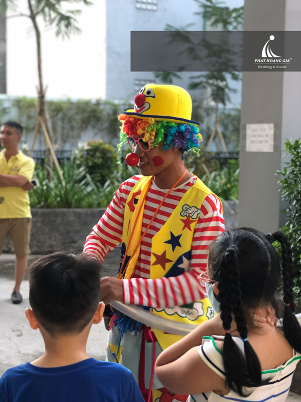 Chăm chú xem Chú hề biểu diễn với bong bóng