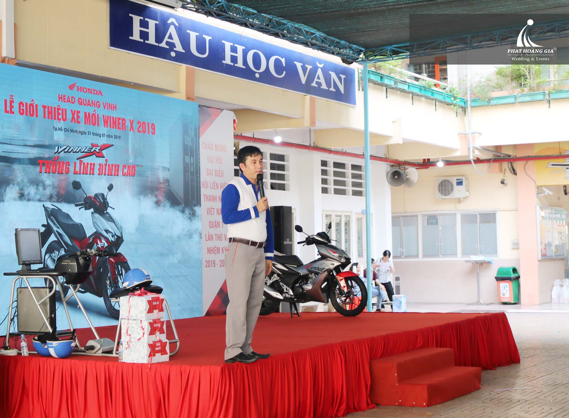 Phát Hoàng Gia một lần nửa xin chân thành cám ơn Head Honda Quang Vinh Đã tin tưởng lựa chọn chúng tôi là đơn vị tổ chức sự kiện. Trong chương trình Phát Hoàng Gia hân hạnh cung cấp các hạng mục âm thanh ánh sáng sân khấu, Backdrop cùng các thiết bị sự kiện khác.