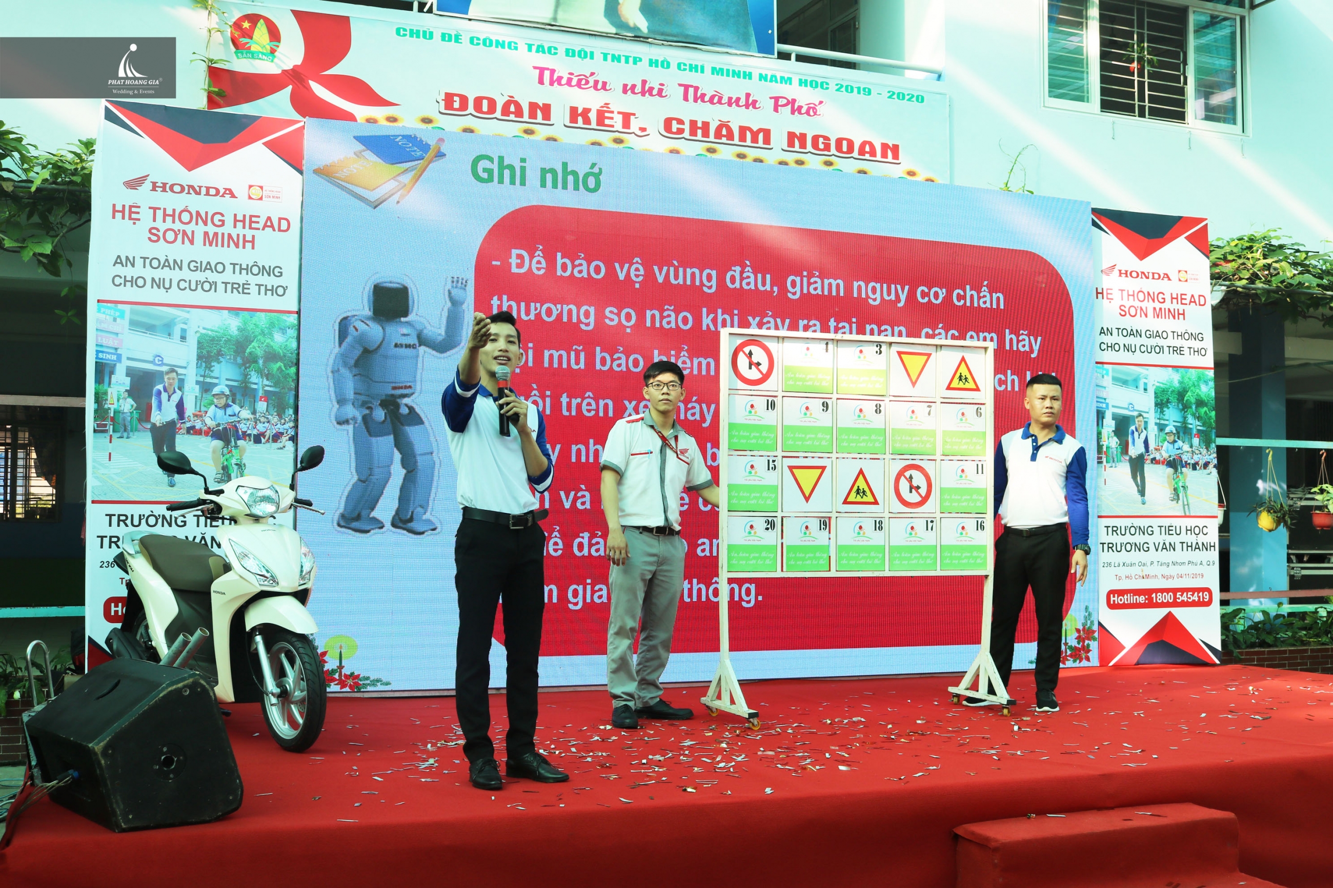 Ngày 04.11.2019 vừa qua Công Ty TNHH MTV Sự Kiện Phát Hoàng Gia tiếp tục đồng hành với Head Honda Sơn Minh trong chuỗi hoạt động lái xe an toàn với nội dung “ ATGT cho nụ cười trẻ thơ ” được tổ chức tại Trường Tiếu học Trương Văn Thành số 236 Lã Xuân Oai, Phường Tăng Nhơn Phú A, Quận 9