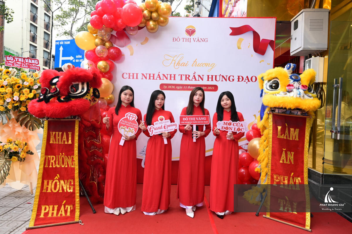Với doanh nghiệp, khai trương không đơn thuần chỉ là buổi lễ công bố hoạt động mà còn là lời khẳng định sự hiện diện của thương hiệu trên thị trường. Phát Hoàng Gia đã tổ chức hàng trăm lễ khai trương cho chuỗi cửa hàng, siêu thị, văn phòng đại diện từ Bắc vào Nam như Hà Nội, TP.HCM, Bình Dương, Cần Thơ, Long An,… Nhờ kinh nghiệm dày dặn, Phát Hoàng Gia luôn lên kịch bản chi tiết, từ ý tưởng trang trí, lựa chọn MC, tiết mục biểu diễn đến các nghi thức cắt băng, khui sâm banh. Mỗi chi tiết đều được thực hiện tỉ mỉ nhằm đảm bảo buổi lễ không chỉ trang trọng mà còn mang lại sự may mắn, khởi đầu thuận lợi cho doanh nghiệp.
