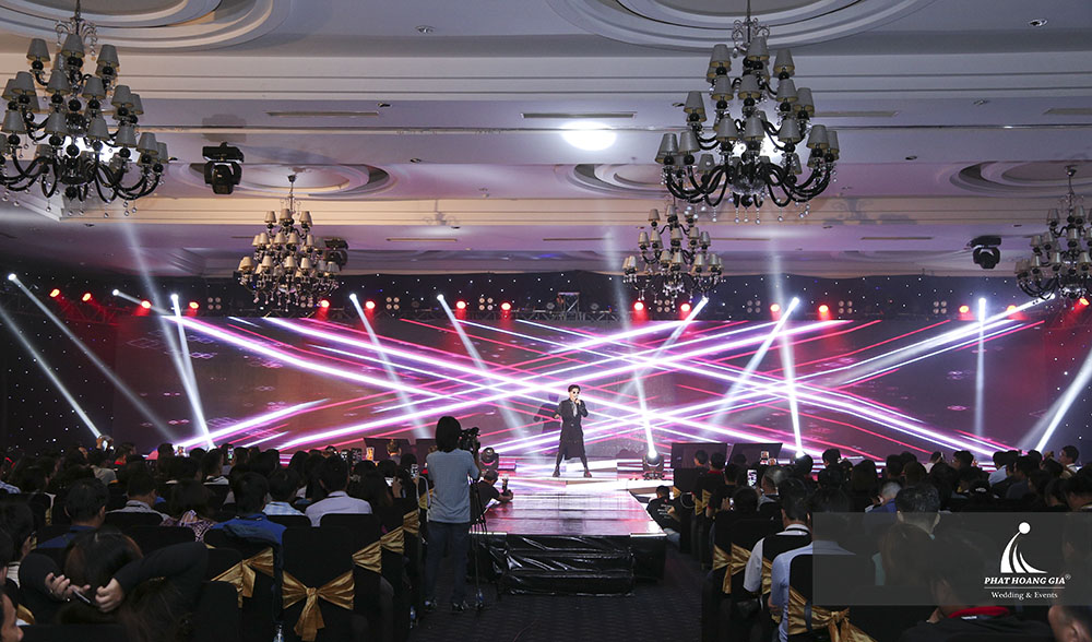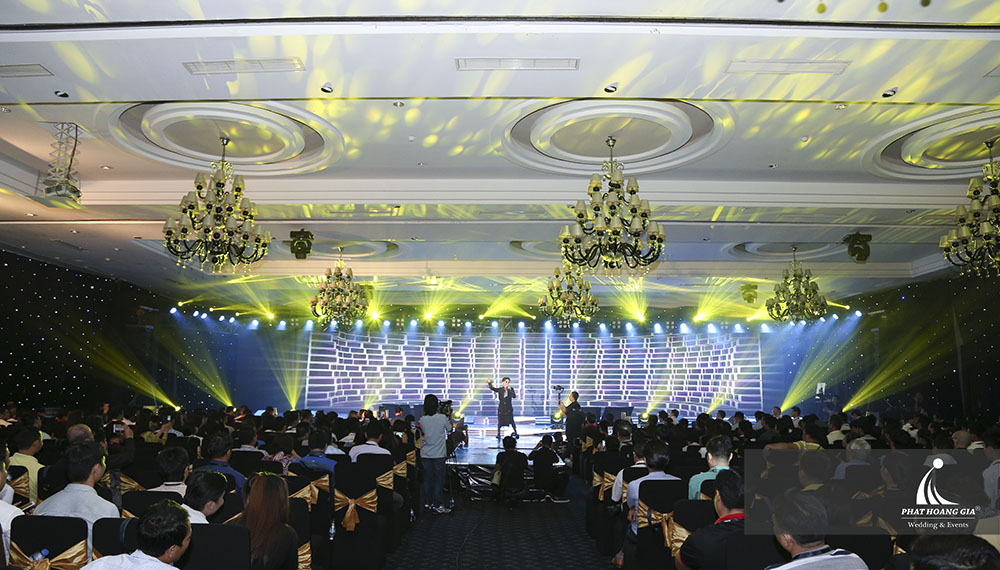 Khán phòng lỗng lẫy với không gian màn sao, sân khấu với màn hình led nhiều hiệu ứng hình ảnh tinh tế, sắc nét, nhận được nhiều đánh giá cao của khách tham dự cùng hệ thống âm thanh, ánh sáng được thiết kế và lắp đặt chuẩn xác, kết hợp với nhau một cách nhuần nhuyễn, chính là sản phẩm rất tâm huyết của ekip Phát Hoàng Gia.
