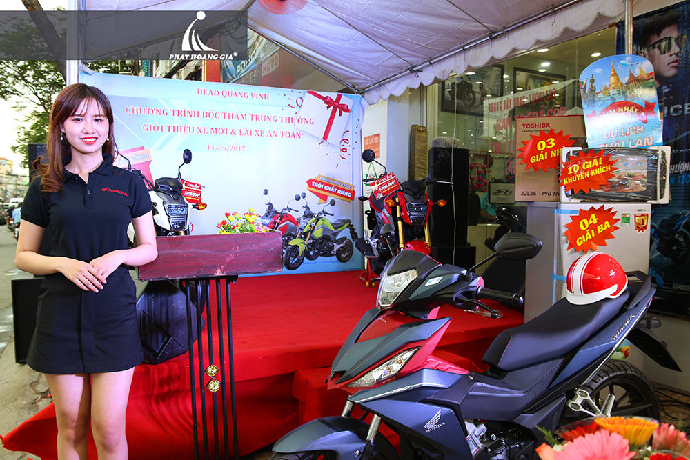 Tối ngày 14.05.2017 vừa qua, công ty TNHH MTV Sự Kiện Phát Hoàng Gia đã tổ chức thành công buổi bốc thăm trúng thưởng tại Hệ thống Head Honda Quang Vinh, địa chỉ số 52 Nguyễn Tất Thành, Phường 12, Quận 4, TP.HCM.