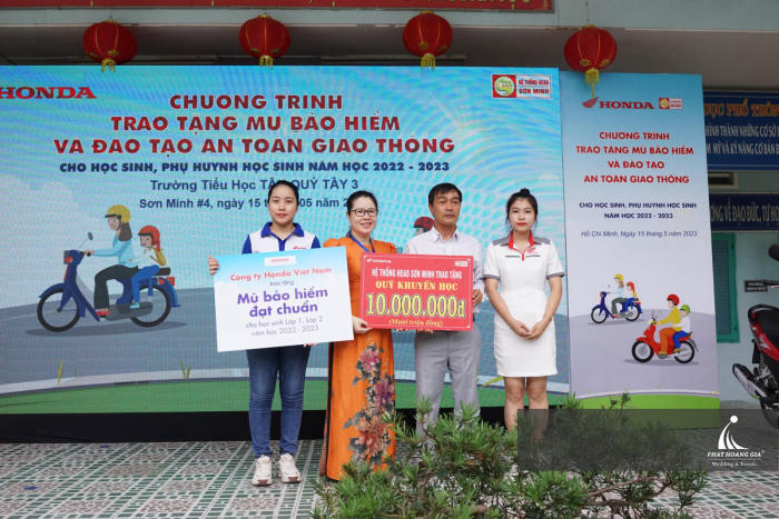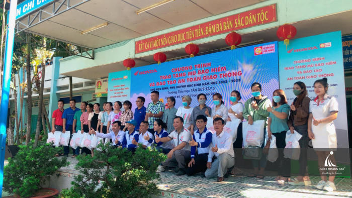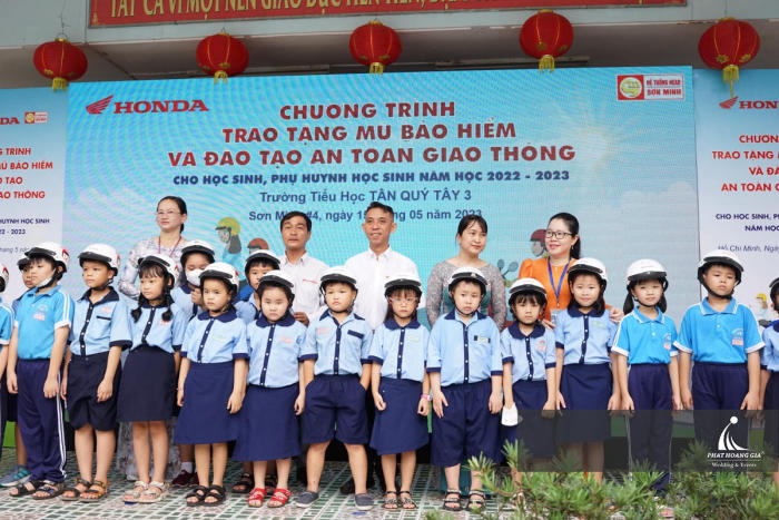 Ngày 15.05.2023, Phát Hoàng Gia đồng hành cùng Head Sơn Minh tổ chức sự kiện TRAO TẶNG MŨ BẢO HIỂM VÀ ĐÀO TẠO AN TOÀN GIAO THÔNG” cho hơn 500 học sinh tại Tiểu học Tân Quý Tây 3 ở địa chỉ: xã Tân Quý Tây, huyện Bình Chánh, Thành phố Hồ Chí Minh.