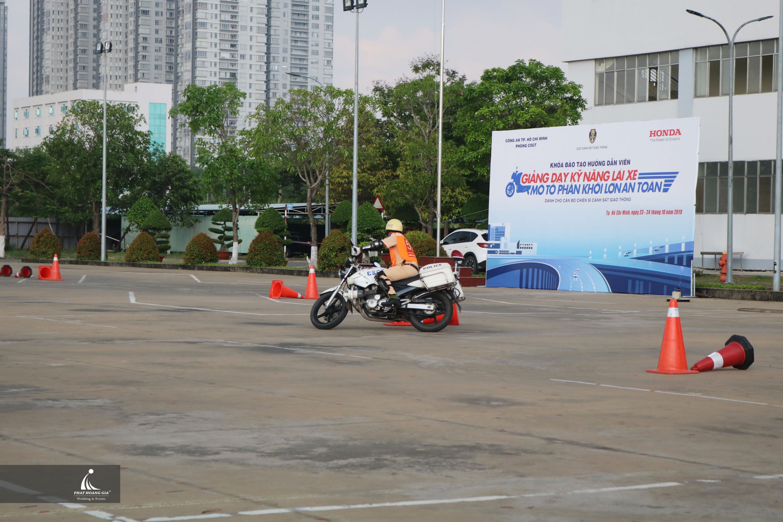 Trong ngày thứ 2 này các chiến sỹ cảnh sát giao thông tiếp tục được các hướng dẫn viên đến từ Head Honda Sơn Minh hướng dẫn các kỹ thuật như: Kiểm tra xe, các thao tác khi sử dụng xe, phanh khẩn cấp, bài tập phản xạ, bài tập cua vòng cọc thẳng số 8, bài tập cua vòng nâng cao…