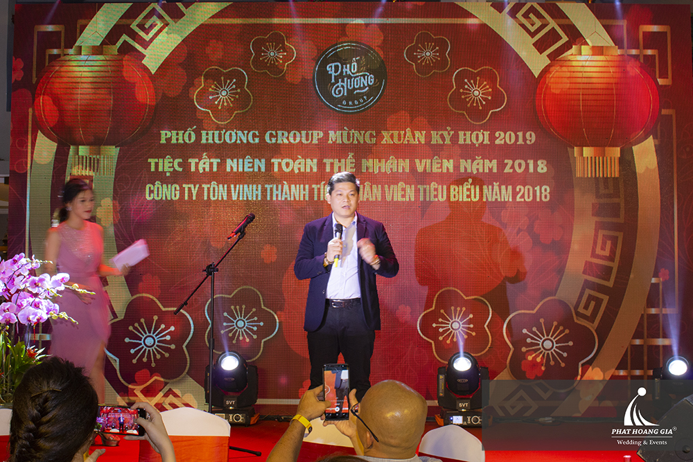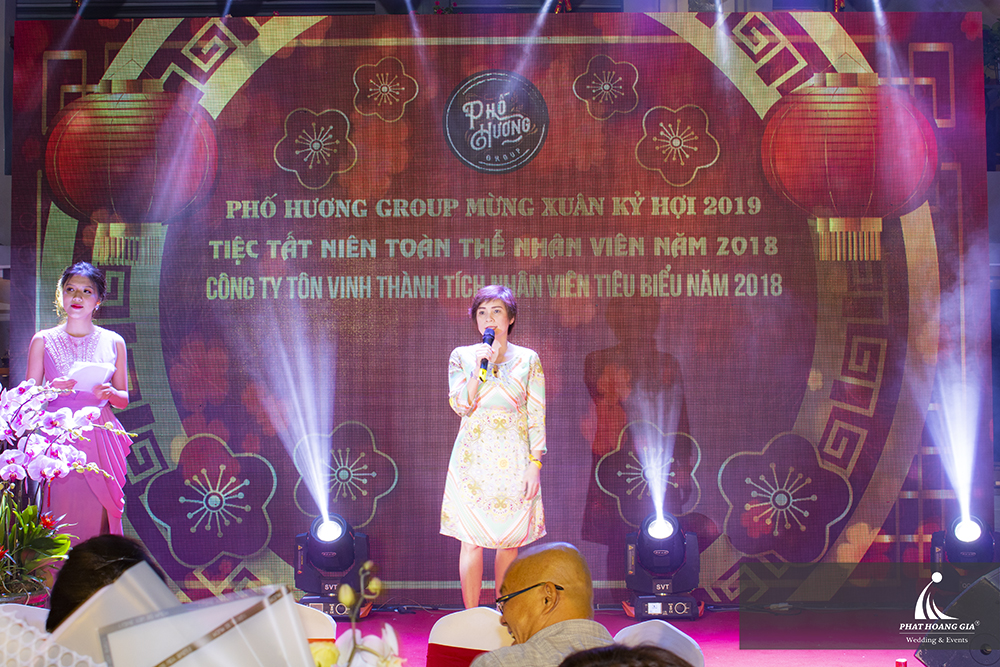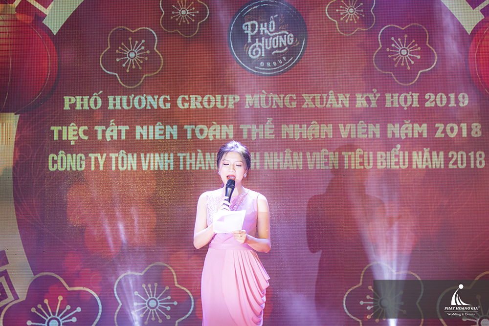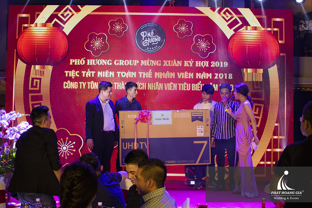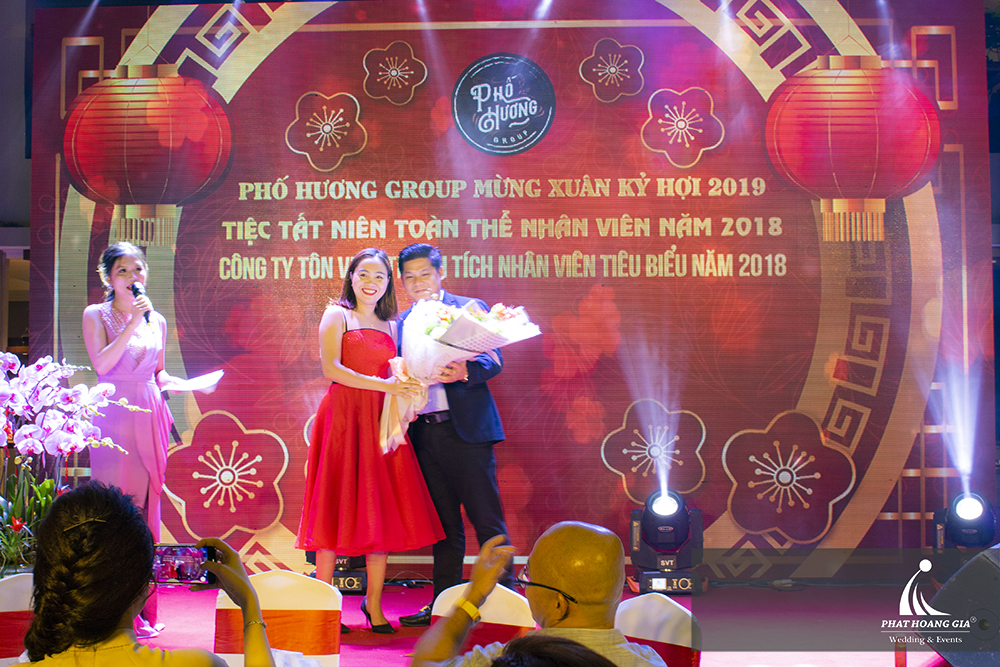 Buổi tiệc tất niên của đã diễn ra trong không khí và đầy cảm xúc. Không gian tiệc được trang trí sang trọng và lộng lẫy, sau màn giới thiệu của MC và bài phát biểu ấn tượng của tổng giám đốc Công ty - Phố Hương Group, những gương mặt nhân viên xuất sắc có đóng góp tâm sức vào sự phát triển của công ty lần lượt được giới thiệu.