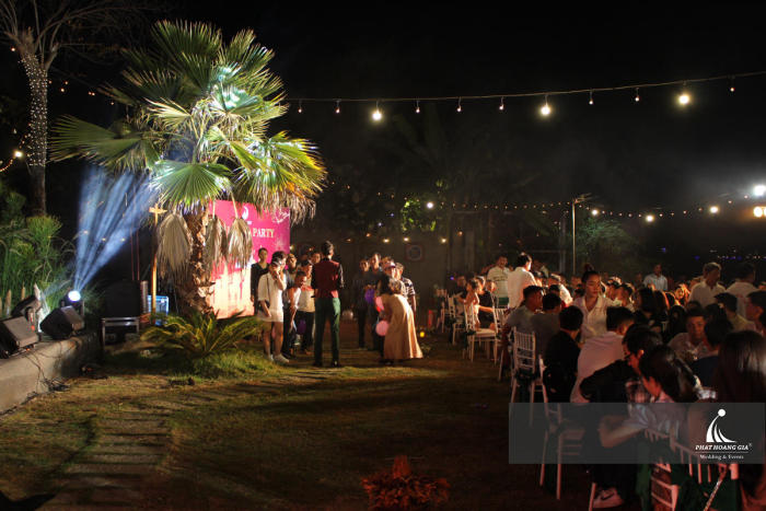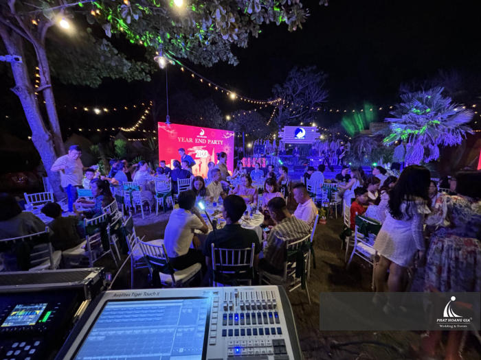 Buổi tiệc Year End Party của công ty Moon Land là một buổi tiệc ấm cúng và đầy ắp niềm vui, kết thúc một năm làm việc đầy khó khăn nhưng cũng đầy thành công. Đêm tiệc diễn ra tại không gian ngoài trời nhưng không kém phần sang trọng.
