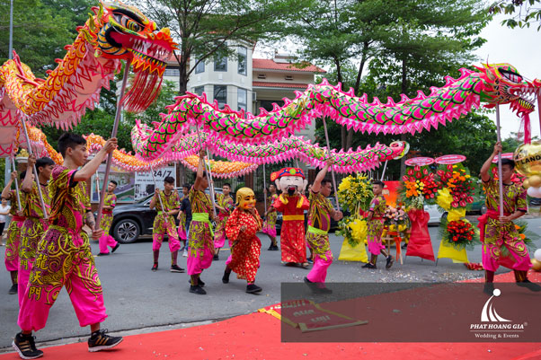 Màn múa lân sư rồng kết hợp với âm thanh trống hội tạo nên không khí vui tươi tưng bừng cho buổi lễ Khai Trương. Có mặt tại buổi lễ khai trương là sự tham gia đông đủ của tập thể nhân viên TNT Land cùng với các khách mời là các đối tác của Công Ty.