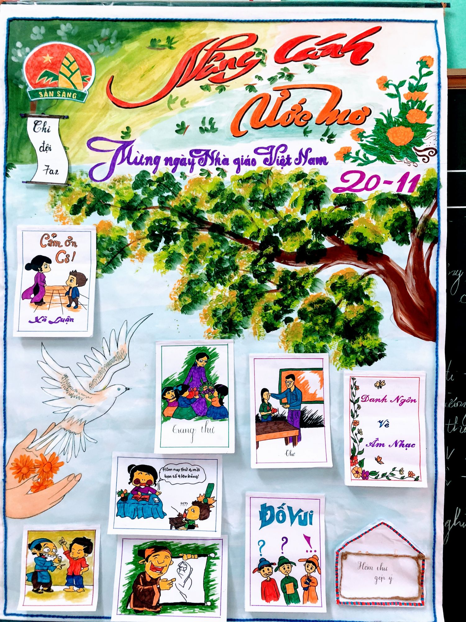 Cuộc thi làm báo tường năm nào cũng được tổ chức được diễn ra toàn trường hoặc theo từng lớp, đây là hoạt động vô cùng ý nghĩa nhằm thể hiện lòng biết ơn của của các bạn học sinh đối với thầy cô giáo của mình thông qua những tác phẩm báo tường như các bài thơ, bài văn….Ngoài ra báo tường còn là cơ hội để bạn bè được gần gũi nhau, gắn kết tình cảm thầy trò.