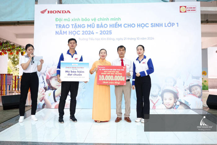 Ngày 14.10.2024, Phát Hoàng Gia hân hạnh đồng hành cùng Head Sơn Minh tổ chức thành công sự kiện “Chương Trình Trao Tặng Mũ Bảo Hiểm Cho Học Sinh Lớp 1” tại Trường Tiểu Học Bình Chánh ở địa chỉ: 42 Trịnh Như Khuê, Bình Chánh, Hồ Chí Minh.