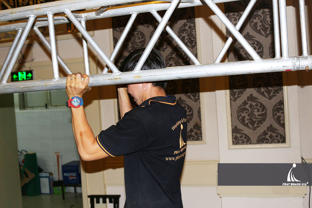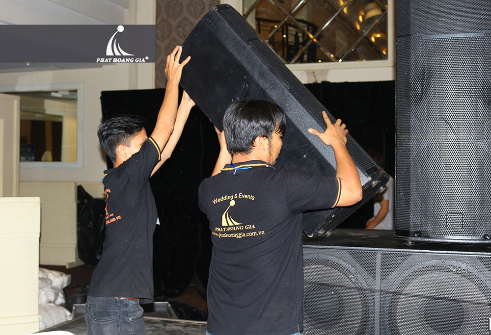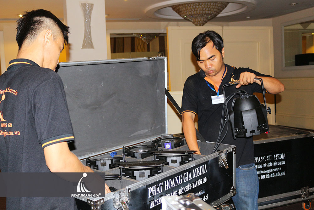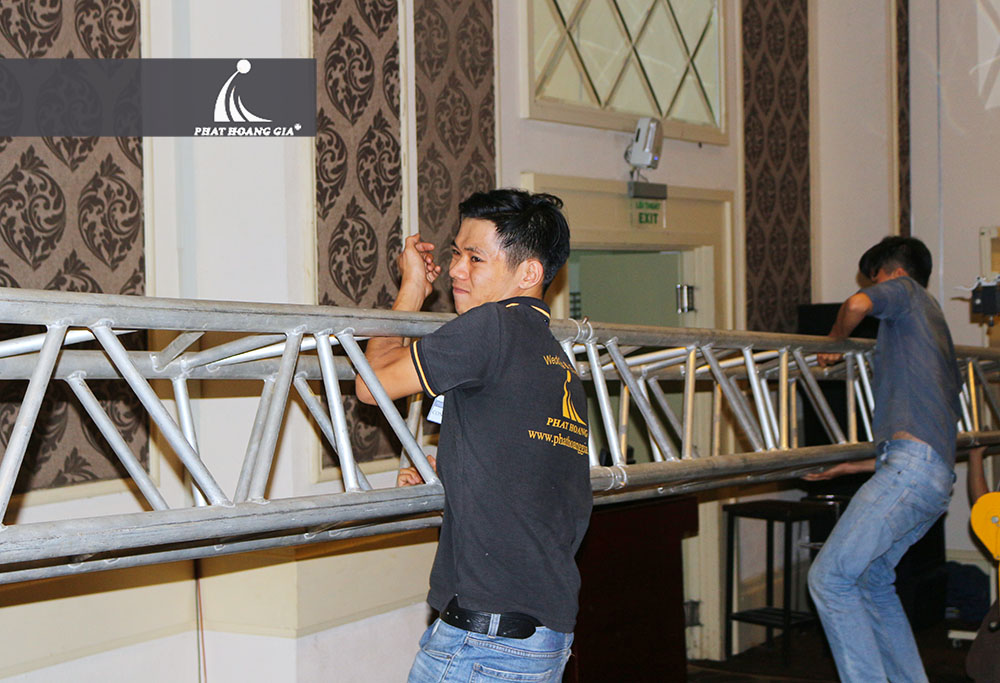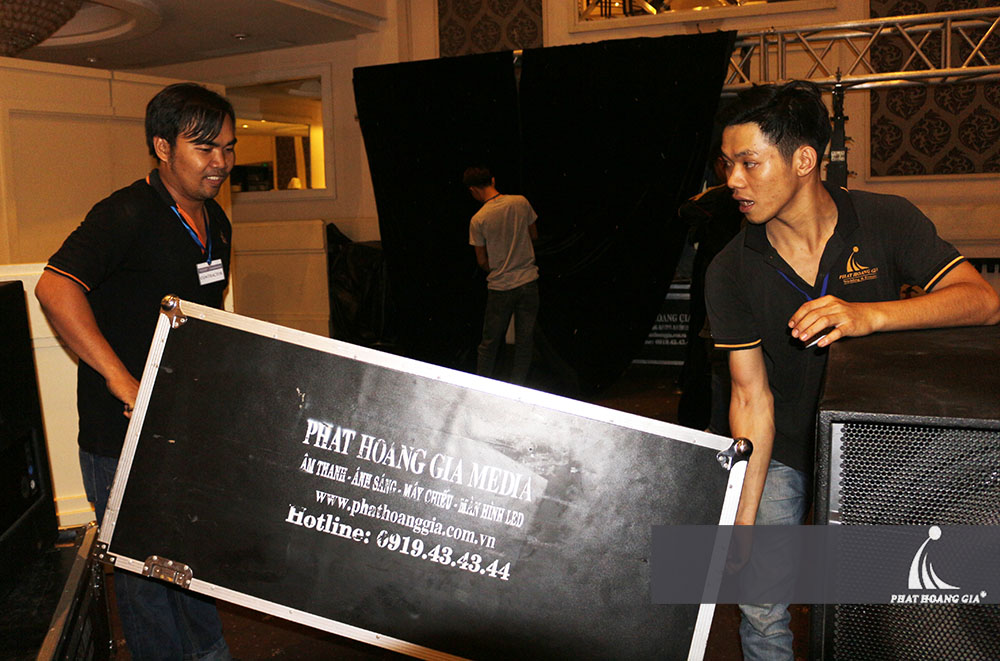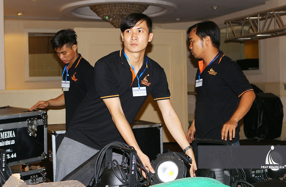 Có mặt ở White Palace vào lúc 22h00 tối ngày 17.12, bộ phận Kỹ thuật và Sự kiện di chuyển hệ thống trang thiết bị vào sảnh tiệc và dàn dựng sân khấu, setup hệ thống âm thanh ánh sáng. Dàn dựng, set up chính là bước đầu tiên trong quá trình chạy sự kiện, nên đòi hỏi mọi chi tiết, từ cái nhỏ nhất đều phải rất kỹ lưỡng. Cùng hỗ trợ nhau trong mọi công việc là điều không thể thiếu.
