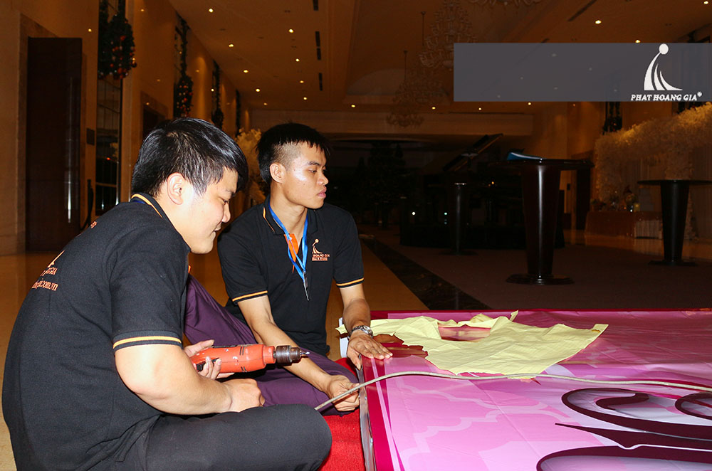 Bộ phận Kỹ thuật đã túc trực liên tục ở White Palace, đẩy nhanh tiến độ cho kịp thời gian tổ chức. Sáng 18.12, đội ngũ Phát Hoàng Gia đã có mặt đông đủ, mọi thành viên phụ trách từng công việc cụ thể, phối hợp ăn ý với nhau để đảm bảo các hạng mục, ý tưởng, kịch bản của chương trình được thực hiện xuyên suốt.
